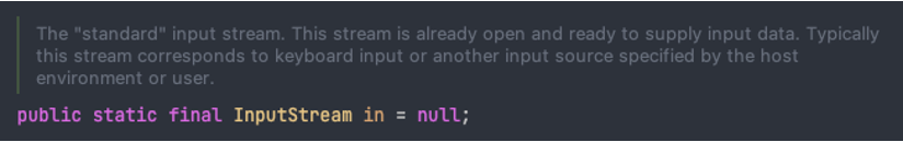 위 이미지는 System.in의 정의로, System.In은 표준입력스트림을 나타냅니다.