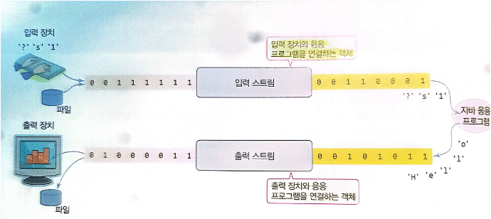 즉, 자바 응용 프로그램은 입출력 스트림과만 연결하고, 입출력 스트림이 입출력 장치를 제어하고 담당하는 역할을 수행합니다.