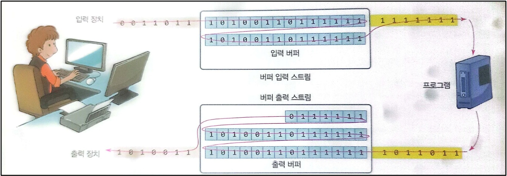 이러한 입출력을 좀 더 효율적으로 수행하기 위해서 버퍼를 사용합니다.