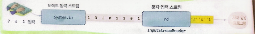 위 코드는 키보드로부터 문자를 입력 받기 위해 표준 입력 스트림인 System.in과 InputStreamReader 스트림 객체를 연결해주는 코드입니다.