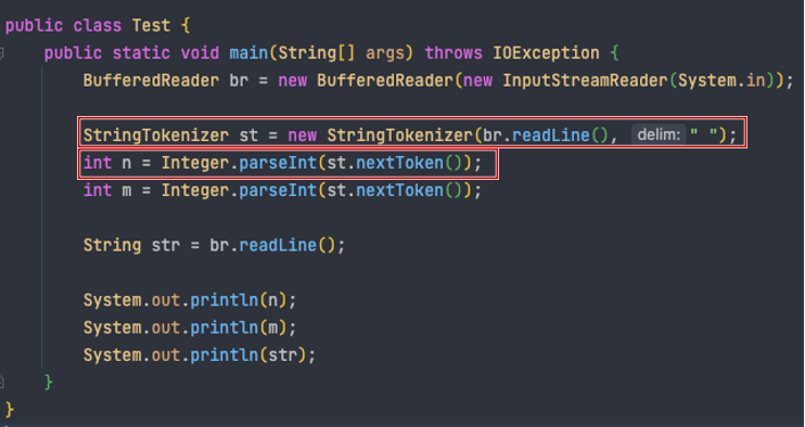 다음으로는 읽어온 라인을 공백을 기준으로 split하고, 문자열 배열을 반환 받은 다음, 첨자로 접근해서 원하는 타입으로 형변환 해주시면 됩니다.