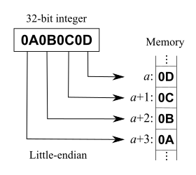16비트 이상의 단어를 처리하는 컴퓨터 시스템에서는 한 개의 단어는 여러 개의 주소 공간에 배정되어야 합니다.