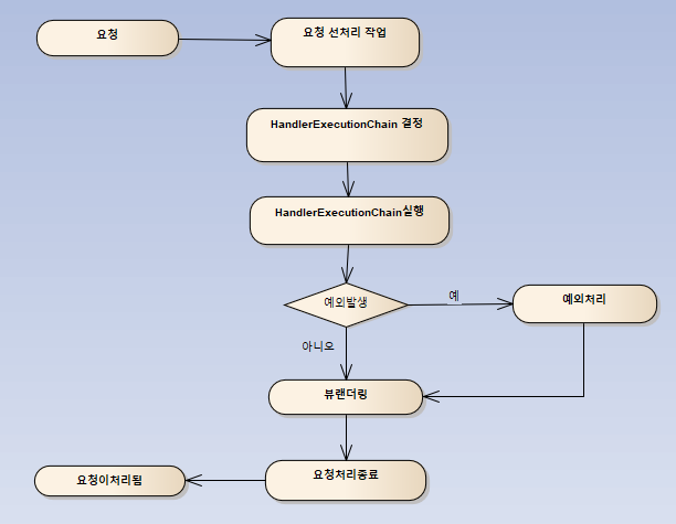 - 즉, 무엇이 실행되어야 될지 알고 있는 객체라고 말할 수 있으며, 핸들러 실행전과 실행후에 수행될 HandlerInterceptor도 참조하고 있다.