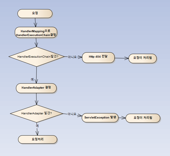 - 디폴트로 설정되어 있는 핸들러어댑터는 HttpRequestHandlerAdapter, SimpleControllerHandlerAdapter, AnnotationMethodHanlderAdapter 3가지이다.